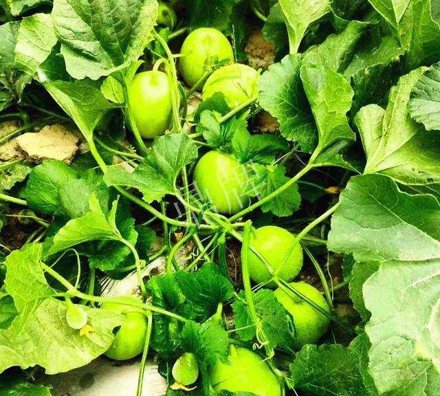 在坐果期遇上了雨天,我也沒有噴“氯吡脲”,以為今年的坐果不會好,雨停幾天后,到瓜地撥開葉片看了一看,嗨,坐的瓜一堆一堆的,當時點了點數,多的1株坐果有13個,最少的1株也有6個,讓我很是驚喜!