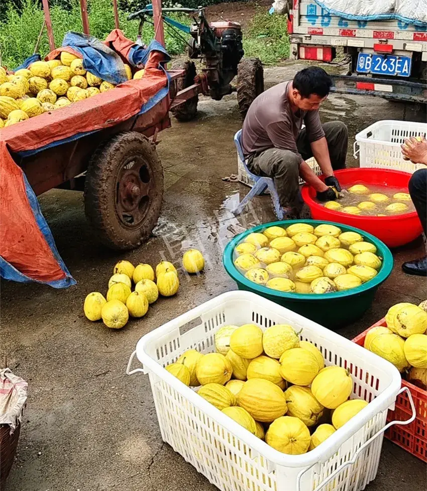 以下是我7月1日到種植戶那收購第二批瓜,瓜農采收“秋甜1號”時,我順手拍下的部分照片: