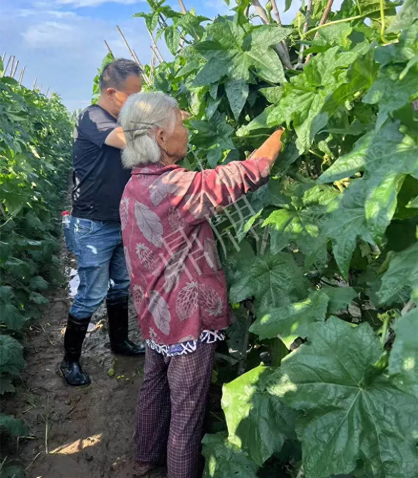 林奶奶這位60歲的滿兒子很能說,說的在行在理。在溝通快要結(jié)束時,他還不忘感謝鼎牌的種子。他說:我有比較滿意的收入,第一感謝的是鼎牌種子,因為種子好,我才能比別人的收入高。他特別提到三倍體絲瓜,在這種自然災害下,明顯比別人的好多了。