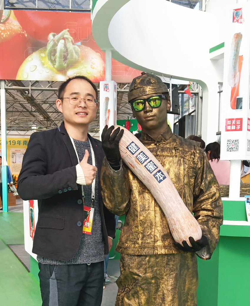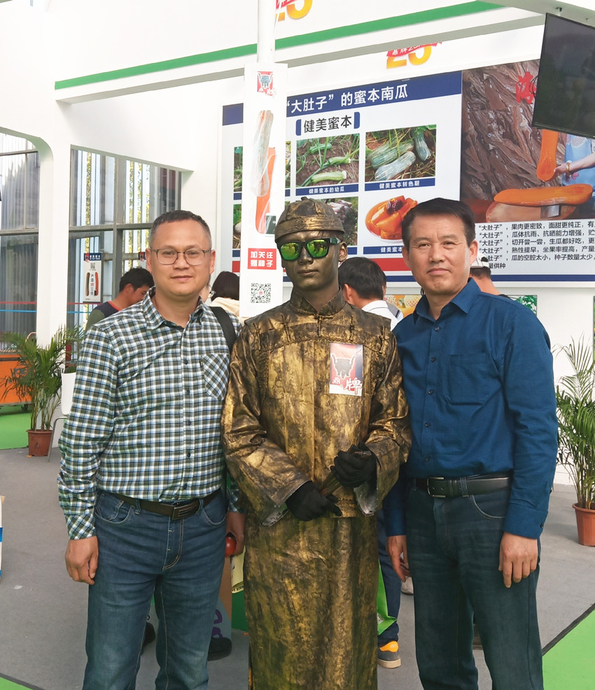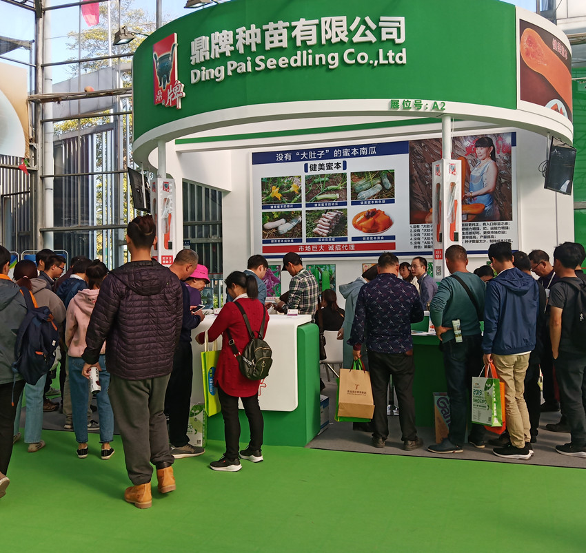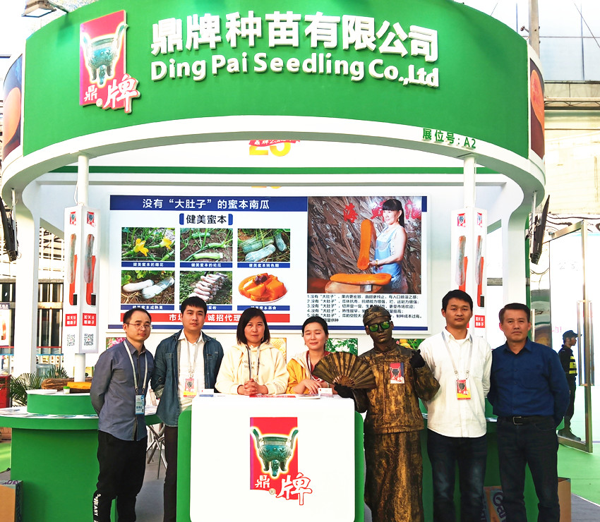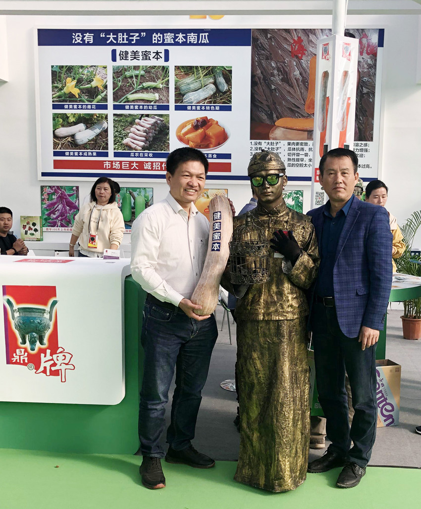 活動(dòng)現(xiàn)場(chǎng),鼎牌展位(A2)在展示大廳脫穎而出??蜕虃冏叩秸古_(tái)前紛紛停下腳步,被鼎牌獨(dú)創(chuàng)的“沒有大肚子的健美蜜本南瓜”所吸引。