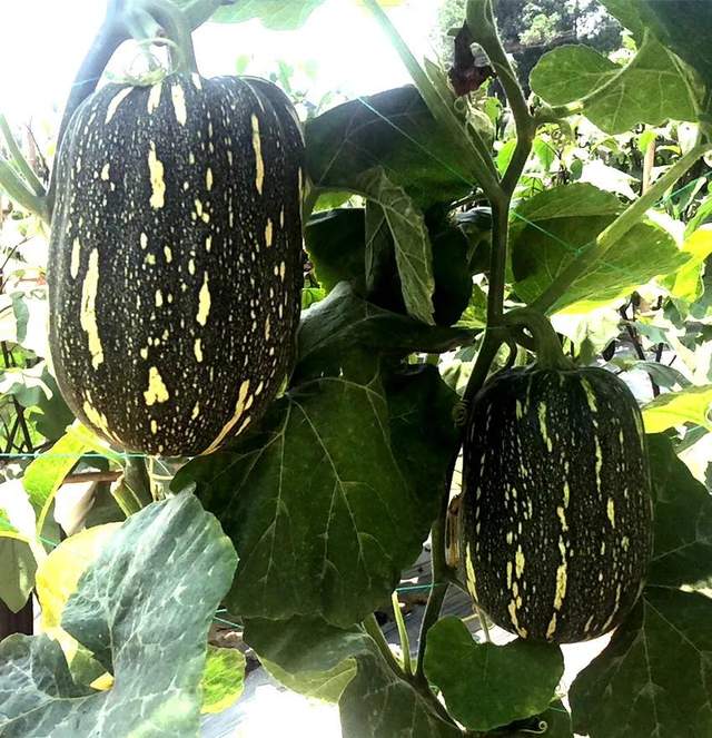 ▲ 開始轉(zhuǎn)色的“健美蜜本”南瓜,