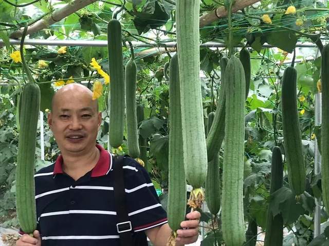 ▲ 客戶在展示“三比6號”絲瓜,