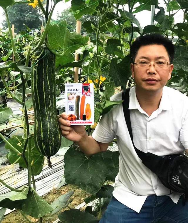 ▲ 客戶在展示“健美蜜本”南瓜,
