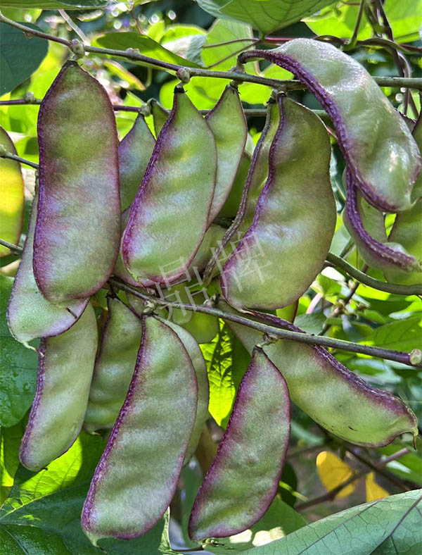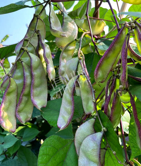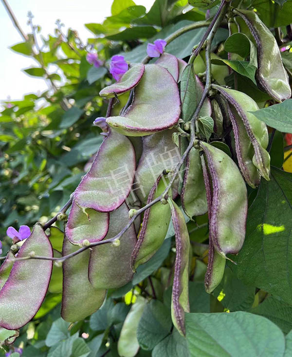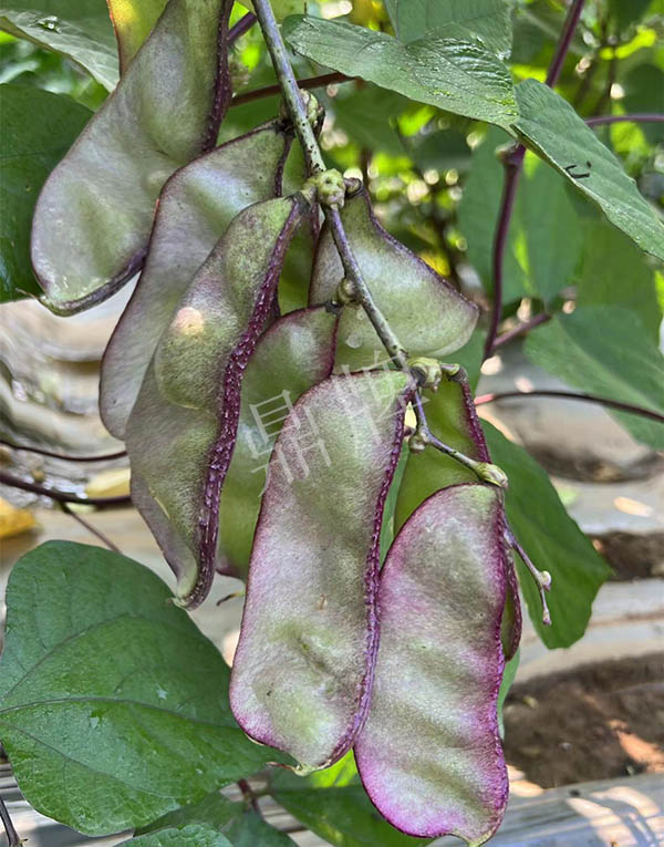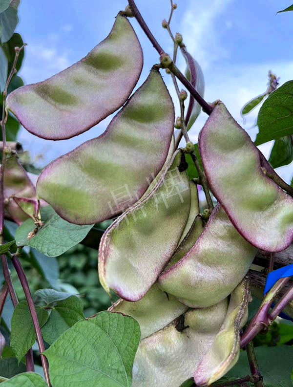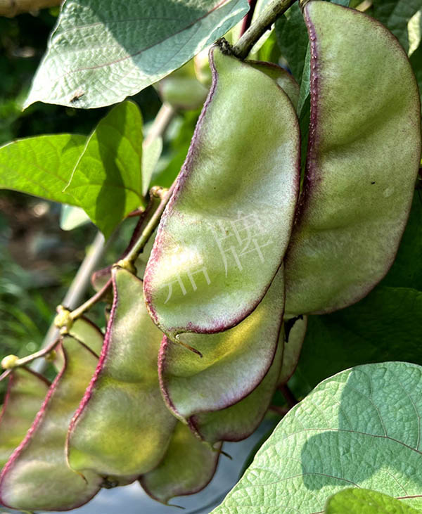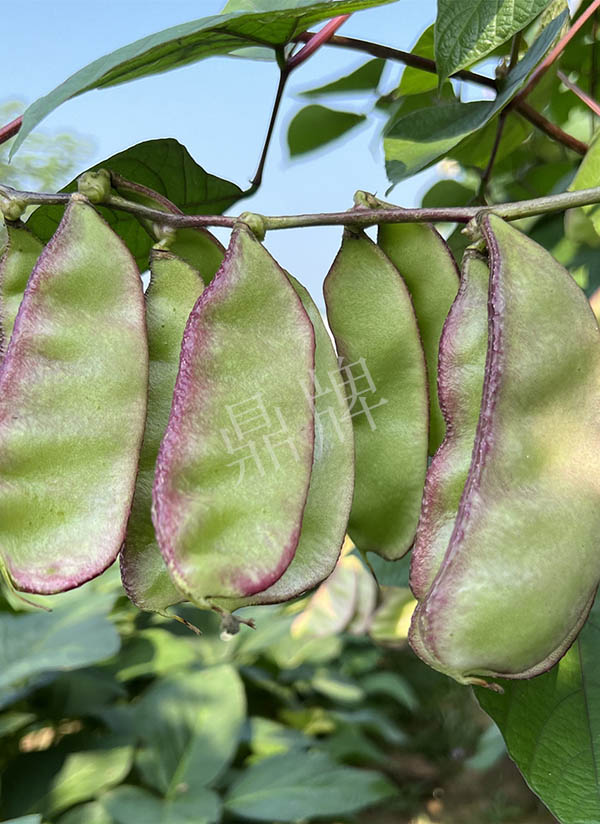 中熟,莢大,是一般扁豆莢的2倍以上,莢的邊緣帶紫紅,形似豬耳朵糖,甚是好看。